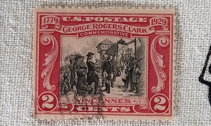 Notably, this was the largest commemorative stamp issued to date (mine measures 39×31 mm), and it was one of only three bicolored stamps issued by the U.S. in the 1920s. Stamp Smarter notes that its “unwieldy” size meant that relatively few were postally used. Nonetheless, it set a record for single day sales from one post office. First Day sales in Vincennes, Indiana (the only location issuing first-day sales) topped 300,000.