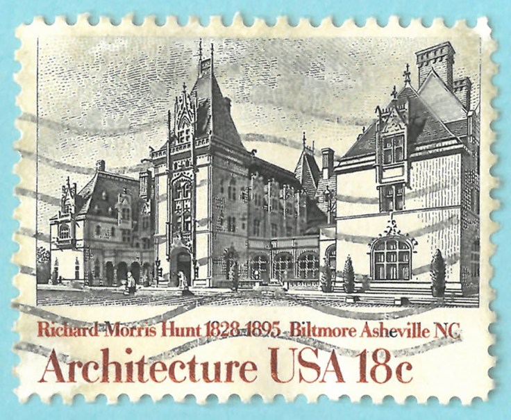 We all know that postage stamps were invented as proof of postage paid. But philatelists understand that stamps have a greater value: They are an incredible conduit for travel across space and time! Long before the wonders of Google Earth, stamps gave people a tangible way of connecting with far off locales and exotic destinations. Today, let’s use stamps to explore one such spot that’s close to home for me: the Biltmore Estate in Asheville, NC.