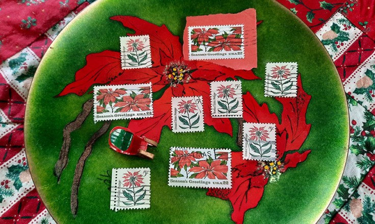 Where can I find poinsettias on stamps?